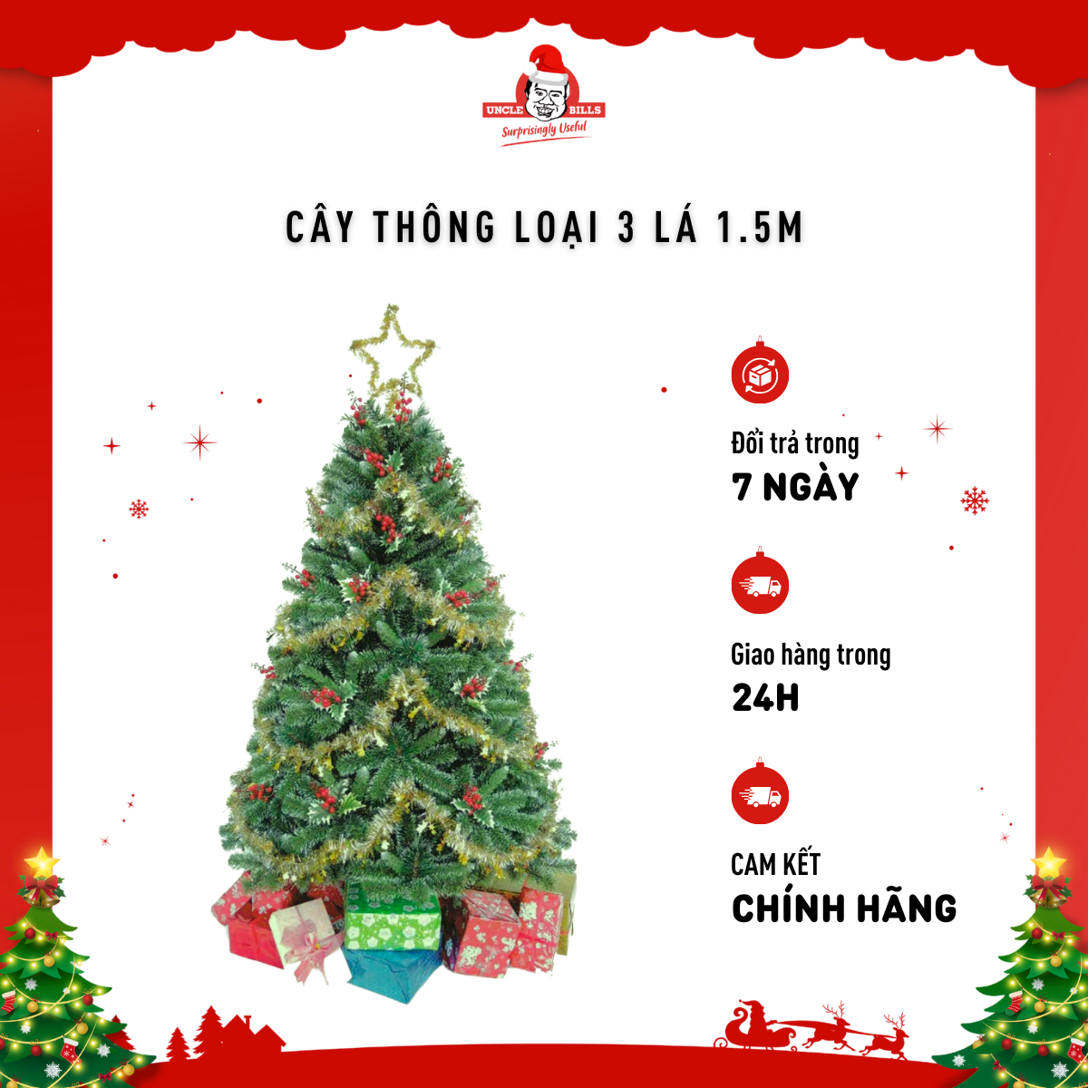 - Cây thông giáng sinh loại 3 lá 1.5m Uncle Bills NOUBL820
